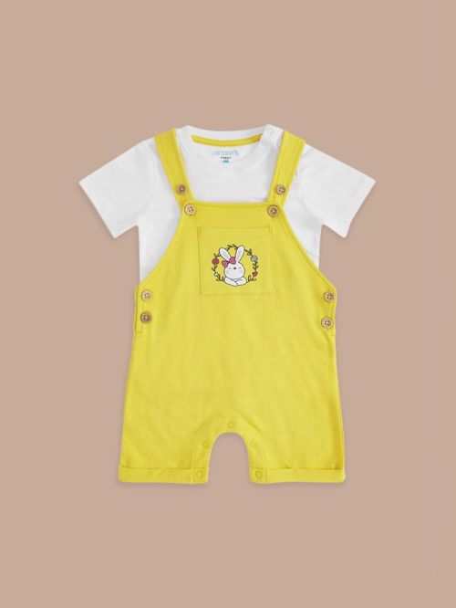 Pantaloons Baby Yellow & White Cotton Printed Dungaree Set