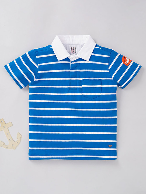 Ed-a-Mamma Kids Blue & White Striped Polo T-Shirt
