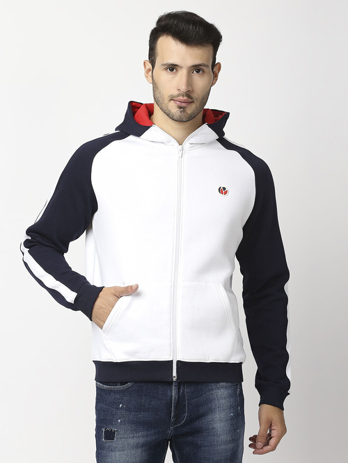 Jack & Jones White Boxy Fit Printed Hooded Sweatshirt