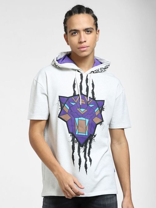 adidas Grey Regular Fit Printed Hooded Sweatshirt