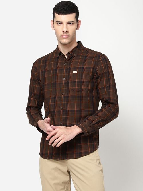 Wrangler Brown Regular Fit Checks Shirt