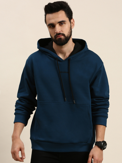 Dillinger Blue Logo Print Oversize Hooded Sweatshirt